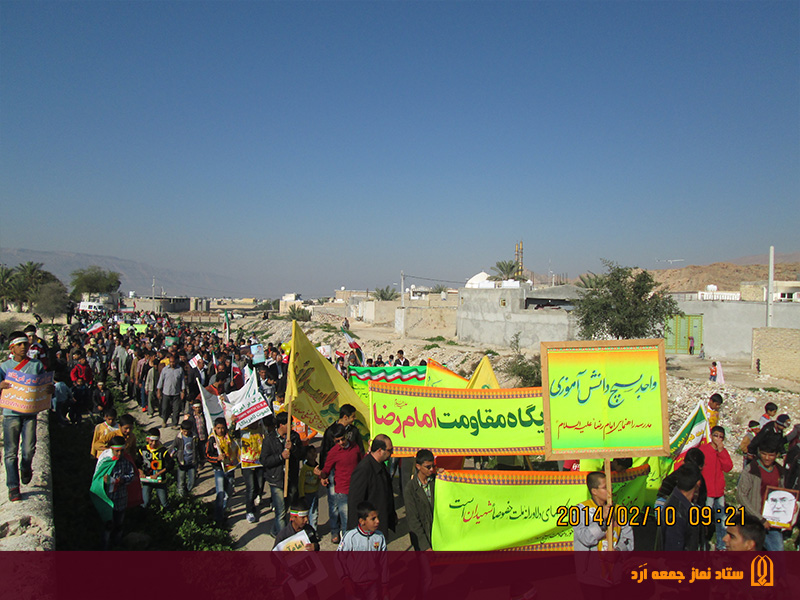 امروز نیز همگام با سایر شهرها و روستاهای کشور، مردم خونگرم ارد در راهپیمایی باشکوه 22 بهمن شرکت نموده و با آرمان های امام راحل (ره) و رهبری معظم انقلاب حضرت آیت الله العظمی خامنه ای(دام ظله) تجدید پیمان نمودند.